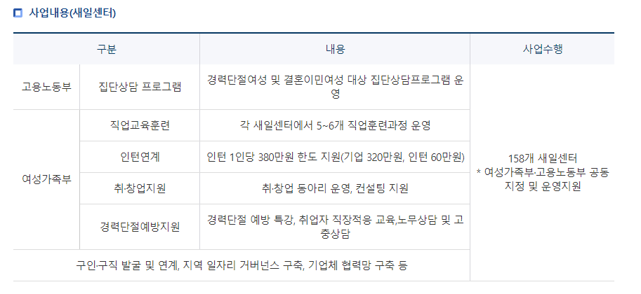 고용노동부 여성고용정책과 (TEL. 044-202-7479), 여성새로일하기센터 (TEL. 1544-1199)