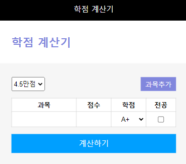 계산하기 버튼을 누르면 평균 학점이 계산됩니다