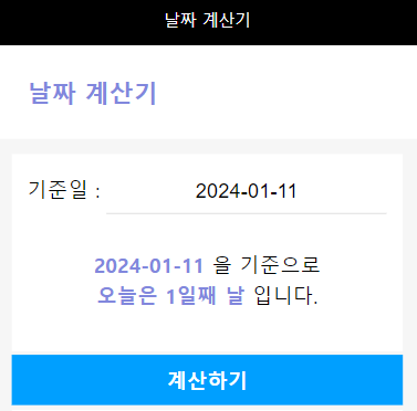 계산하기 버튼을 누르면 시작일부터 종료일까지의 일수가 계산됩니다